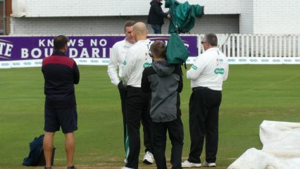 There was, as you would expect at Taunton, a very decent crowd at the schedule start of play. The initial indication was encouraging. The 11am inspection seemed to be concerned primarily with the used pitch ends and areas just off the edge of the square. It was of no surprise, having read the body language of Messrs Wharf and Bailey, that the decreed a further look was required at noon.